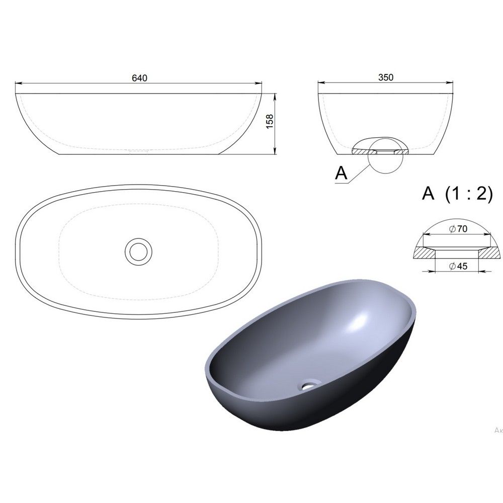 Раковина Holbi Tefia 64см бетон 2.02.008.44.4 купить