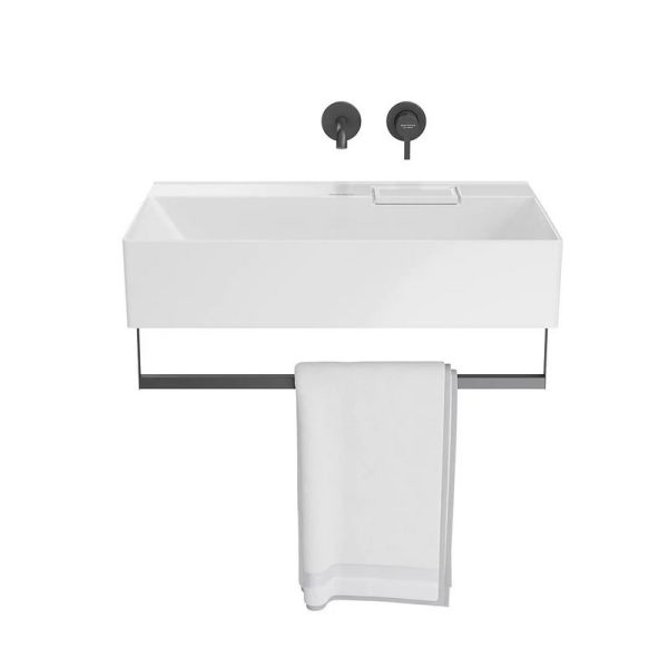 Раковина исполнена в современном геометричном дизайне, чистота которого усилена благодаря Beauty Drain — технологии невидимого слива, который смещён из центра чаши к её задней стенке. При этом отверстие перелива спрятано в небольшой бокс, закрытый керамической крышкой. Это делает наклонное дно чаши идеально ровным и упрощает процесс уборки. Данная модель раковины не содержит отверстия под смеситель и предусмотрена для использования с настенным смесителем. Установка раковины возможна как на тумбу LOGICA соответствующего размера, так и в подвесном варианте без мебели, в том числе с полотенцедержателем LOGICA.