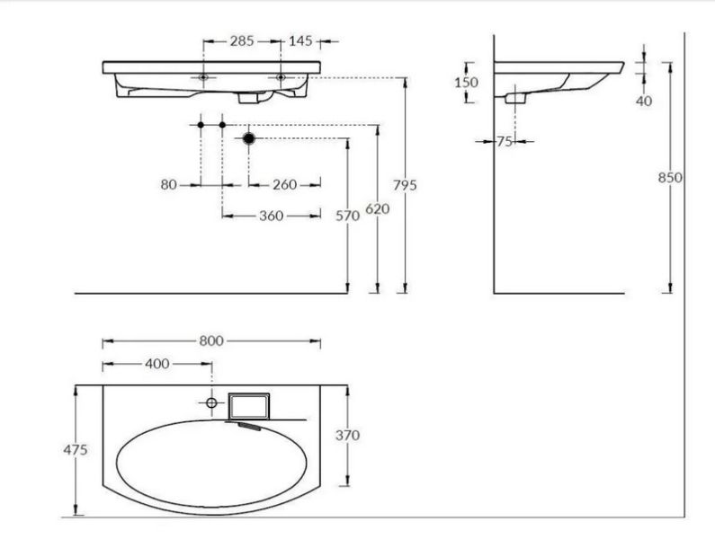 Изогнутая мебельная раковина 80 см без необходимости использования донного клапана, ширина 80 см... Подробнее