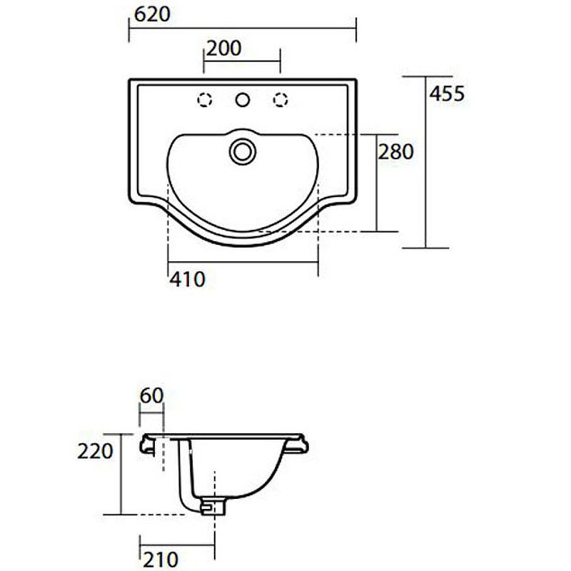 Размеры (ШхВхГ): 62х22х45.5 см.