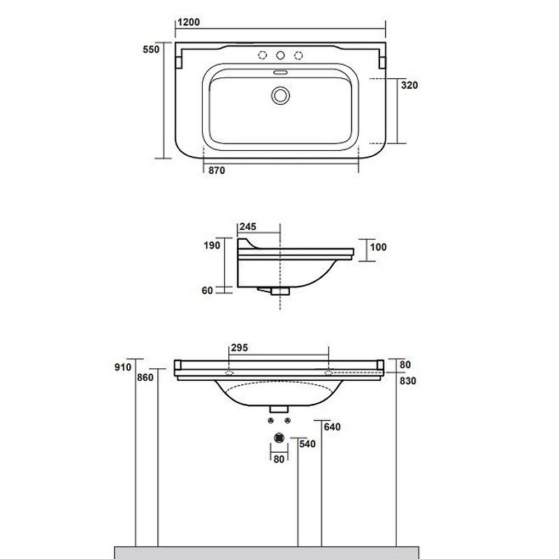 Раковина Kerasan Waldorf 4144K1bi/cr*3 Белая 120 смХарактеристики:Цвет: белый.
