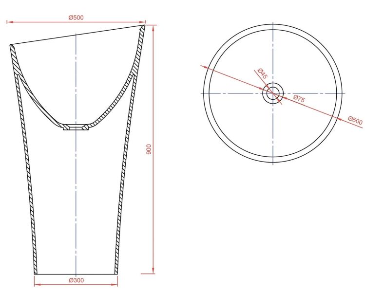 Раковина из искусственного камня для ванной комнаты. Похожие модели – Montebianco Pisa и Pisa Rubinetto.Модель напольного размещения. Безусловным практическим и эстетическим преимуществом является коническая форма. Раковина занимает мало места на полу, при этом за счет расширения к верху функционально очень удобна: вода не разбрызгивается и не выплескивается из объемной, чуть наклоненной к пользователю чаши. Благодаря большой видимой площади белоснежно-матовой, бархатистой поверхности великолепно выглядит в интерьере, является самостоятельной композицией. Популярна среди владельцев частных домов с просторными, светлыми помещениями ванных комнат.Высота раковины и небольшой наклон чаши удобны как для высоких людей, так и небольшого роста, в том числе детей. Крепление смесителя либо к стене, либо напольное, на ножке, подчеркивает современный дизайн и технологичность конструкции. Материал не впитывает влагу, не порист, непроницаем для плесени, бактерий и грибков.Отличия от моделей Pisa и Pisa Rubinetto – в размерах чаши (у Pisa Cono она более объемная), форме (две другие модели – прямые) и месте размещения смесителя (в Pisa Rubinetto он устанавливается на поверхность раковины).