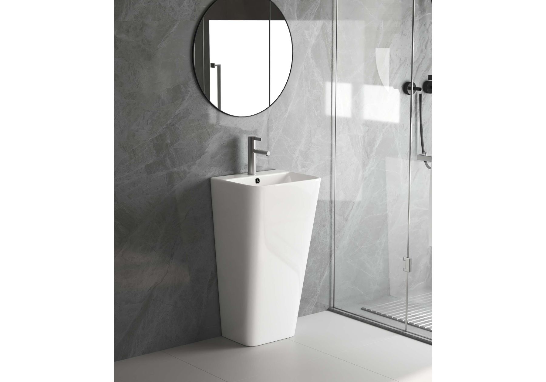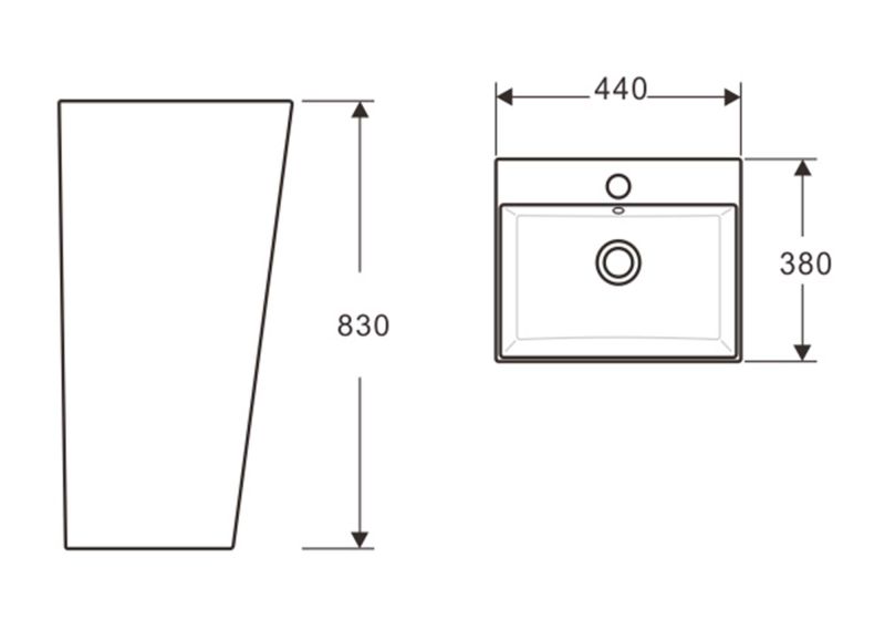 • Конструкция: состоит из монолитной чаши умывальника-пьедестала (стойки), что придаёт сантехнике изысканный и завершённый вид.