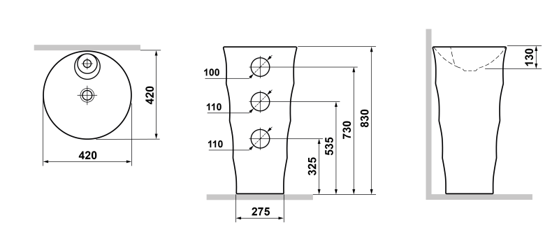 Высота раковины: 830 мм