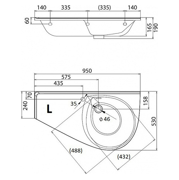 • отверстие под смеситель: 35 мм