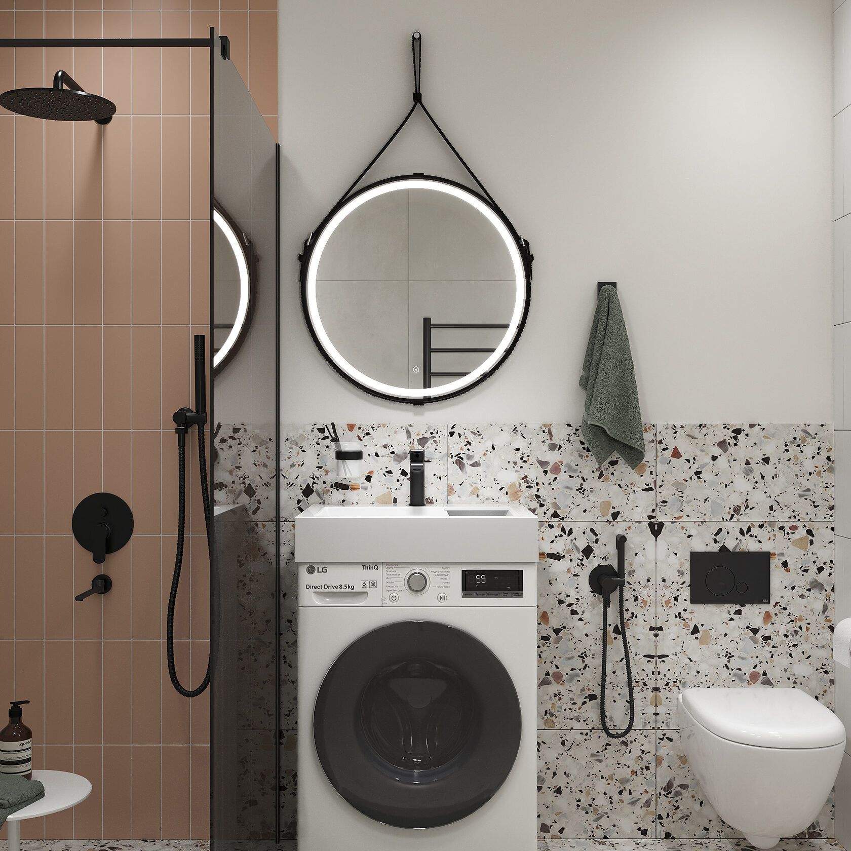 Раковина Reflexion Tetra спроектирована специально для установки над стиральной машинкой. Она имеет неглубокую чашу и горизонтальный слив. Благодаря ему умывальник из искусственного мрамора для ванной комнаты отводит воду в сифон, который проходит позади стиральной машины. Это защищает технику от случайных утечек.