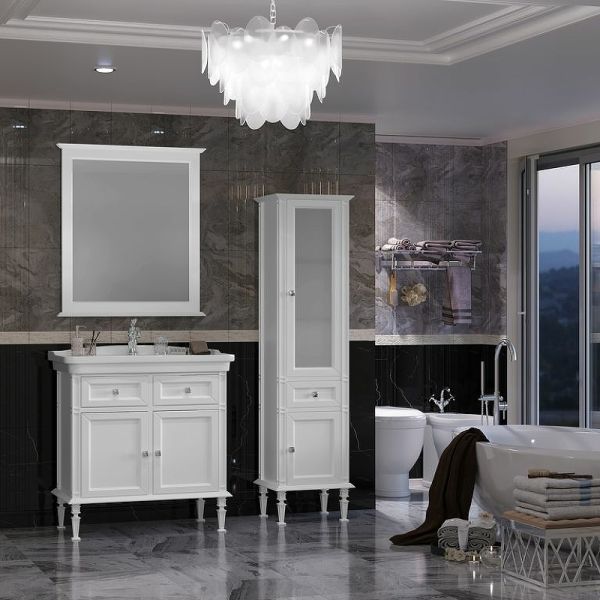 Шкаф-колонна Opadiris Кантара 46 R 00-00004354 Белый матовыйВыглядит роскошно и отличается богатством декорированных элементов и элегантным шиком. Прекрасно дополнит современный интерьер ванной комнаты.Материал: высококачественная МДФ с глянцевой эмалью и оригинальным обрамлением из массива бука с серебряной патиной. При производстве используются только гипоаллергенные и экологически чистые материалы.