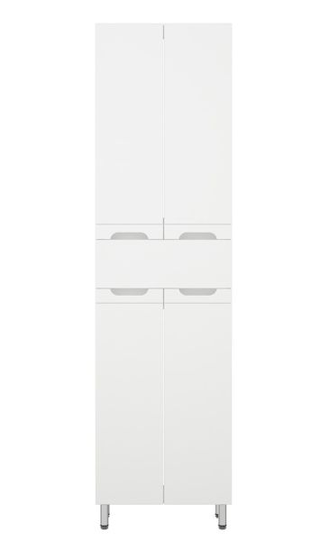 Шкаф-пенал Corozo Лея 50 Z1, 50 см, цвет белый, SD-00000001Коллекция мебели для ванных комнат "ЛЕЯ" создана для тех, кто ценит простоту форм, сочетание округлых и прямых линий, удобство эксплуатации. У мебели коллекции «ЛЕЯ» корпус выполнен из ЛДСП, фасады - из влагостойкой плиты МДФ, покрытие – пленка ПВХ. Мебель оснащена доводчиками. Модель пенала разделена на две автономные секции, на которых предусмотрено по две распашные дверцы и один выдвижной ящик высотой 160 мм по центру. Позади створок - по одной вкладной полке. Устойчивость конструкции обеспечивают четыре металлических хромированных опоры. Фурнитура с лицевой стороны фасадов отсутствует, вместо нее предусмотрены интегрированные ручки с декоративной полосой тонкой фрезеровки. Бесшумность и долговечность эксплуатации обеспечивают надёжные системы мягкого закрывания – роликовые направляющие и петли с доводчиками.
