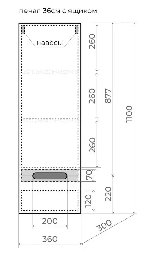 Шкаф-пенал Style Line Матис ЛС-00002295 36 подвеснойАртикул ЛС-00002295