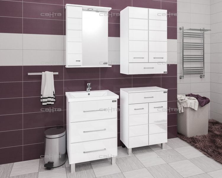 Шкаф СанТа отлично впишется в дизайн любой ванной комнаты, будь то компактная ванная в многоэтажном доме или большой санузел в загородном коттедже.Компания СанТа использует при производстве высококачественные водоотталкивающие материалы (ВЛДСП), соответствующие всем необходимым требованиям безопасности. Коллекция выполнена в эксклюзивном дизайнерском решении в лучших традициях современного стиля. Белый, основной цвет исполнения СанТа, отлично подходящий большинству дизайнерских решений. Шкаф предусматривает удобную и вместительную систему хранения, состоящую из дверей, ящиков. Качественные доводчики позволяют обеспечить мягкое и тихое закрывание.Россия родина бренда СанТа, вся продукция производится со строгим соблюдением всех стандартов, благодаря чему можно быть абсолютно уверенным в надежности и высоком качестве. Шкаф СанТа создаст уют и комфорт в любом дизайнерском решении, и ванная комната обретет неповторимый элемент интерьера.