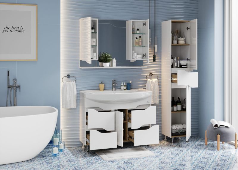 Каждая деталь подвесного зеркального шкафа Onika ВЕРОНЭЛЛА 105 отражает индивидуальность владельца, создавая безупречный стиль и элегантность ванной комнаты.
