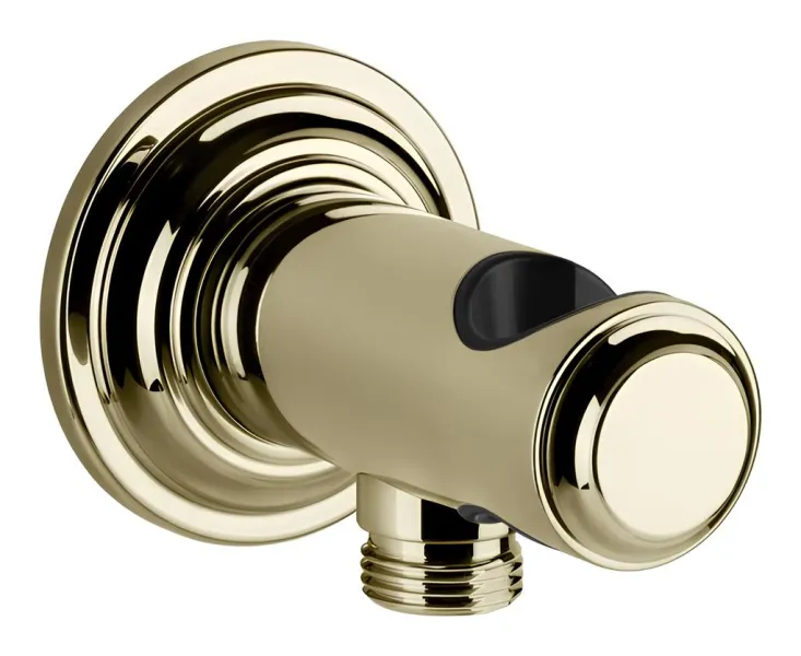Шланговое подсоединение Gessi Venti20 длиной 90 мм объединяет в себе три функции: вывод воды, подключение душевого шланга и встроенный держатель для ручной лейки. Такое конструктивное решение позволяет сократить количество отдельных элементов на стене и поддерживает чистоту композиции.