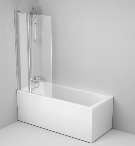 Душевое ограждение на борт ванны Gem - дверь с неподвижным стеклянным элементом, удобная конструкция при монтаже рядом со смесителем для ванны.