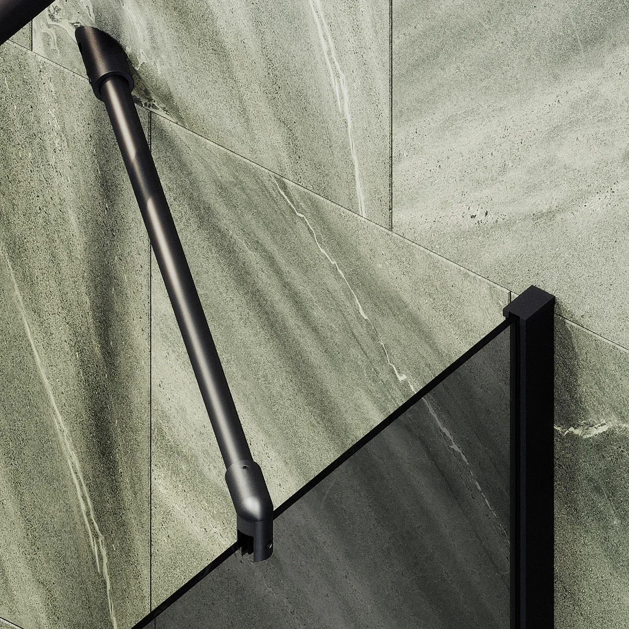 Монтаж осуществляется с помощью алюминиевого профиля, что обеспечивает надежность крепления и безопасность использования стеклянной перегородки для ванной. Также, шторка оснащена специальным уплотнителем, который предотвращает попадание воды на пол ванной комнаты. Закаленное стекло, цвет Графит, толщина 8 мм 1400х300 мм - 1 шт.