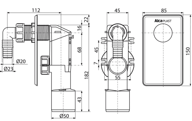 Сифон для стиральной машины AlcaPlast под штукатурку белый APS4 купить