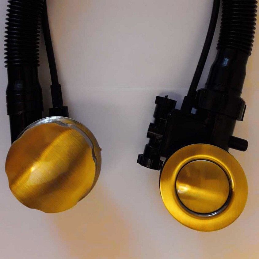 Слив-перелив BOHEME (Италия) полуавтомат;Декоративная накладка диаметром 70 мм в цвете золото идёт в комплекте;Материалы: сантехнический пластик, сантехническая латунь.