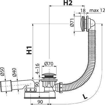 Слив-перелив для ванны AlcaPlast клик-клак хром A507KM-100