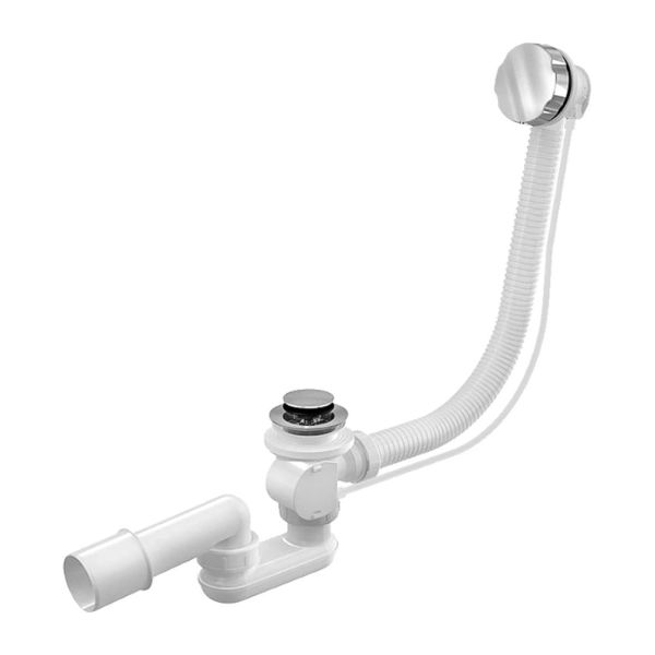 Полуавтоматический слив-переливом 60 см. Металлическая хромированная поворотная ручка предотвращает "скручивание" и увеличивает срок его службы.Подвижные элементы гидрозатвора позволяют при установке, задать любой угол поворота сливного патрубка.Трехстороннее уплотнение отверстия слива устраняет попадание воды на незащищенные участки материала ванны. Цвет сливной пробки и крышки перелива хром. Слив-перелив с универсальным отводом: 40/50 мм.
