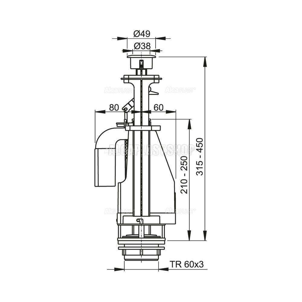 • Конструкция позволяет регулировать высоту механизма в зависимости от высоты бачка