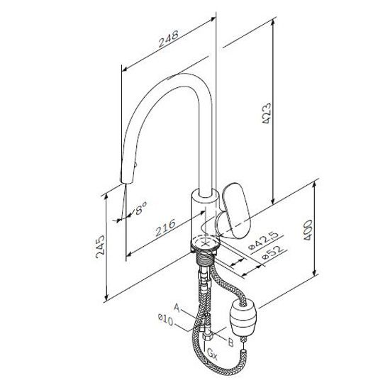 • Высота смесителя: