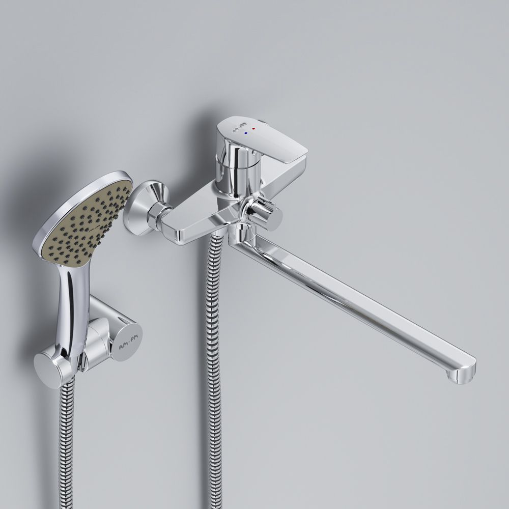 Эксклюзивная разработка: специально спроектированный для АМ.РМ керамический картридж SoftMotion 35 мм обеспечивает оптимальную регулировку температуры, а также позволяет выдерживать любые перепады давления. Точная инженерия для Вашего комфорта: благодаря обширной зоне движения ручки управлять температурой воды еще проще.В комплекте душевой набор: стильный ручной душ 120 мм 1 режим, настенный держатель с регулировкой угла наклона, душевой шланг с защитой от скручивания.