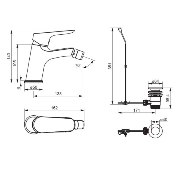 Смеситель для биде Damixa Jupiter 770240000 с донным клапаном хром купить