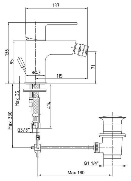 - Высота смесителя:13.6