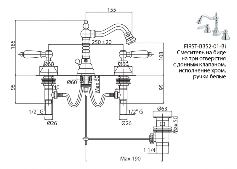 - Высота смесителя:18.5