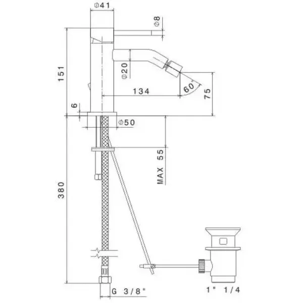 Однорычажный смеситель для биде выполнен из нержавеющей стали AISI 316: этот металл обладает особой устойчивостью к механическим воздействиям, гипоаллергенен, не подвержен коррозии. Смеситель имеет покрытие брашированная медь: это не просто цвет, а металлический слой, наносимый по технологии вакуумного напыления (PVD) и отличающийся высокой стойкостью. В комплект входит донный клапан.