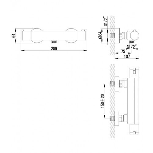 При монтаже данной модели подвод горячей воды осуществляется только слева! В противном случае поддержание термостатом заданной температуры невозможно.