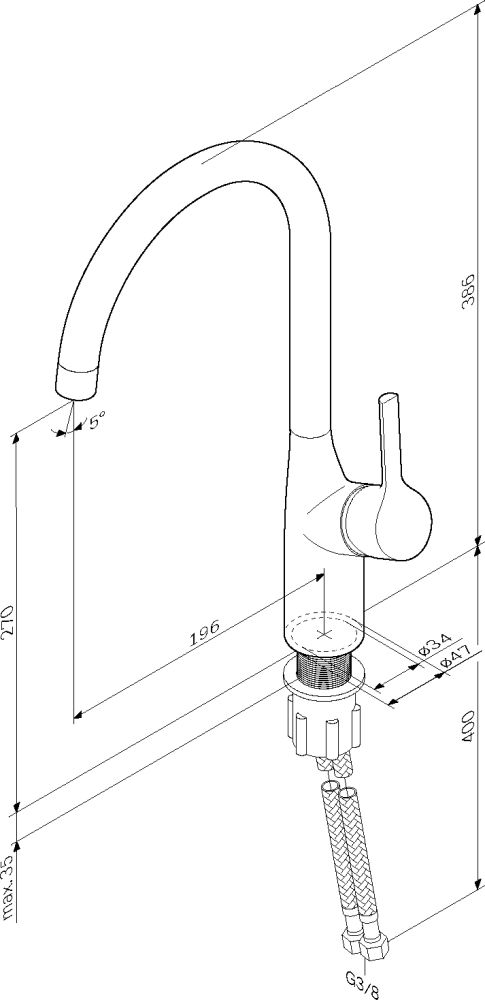- Высота смесителя:38.6