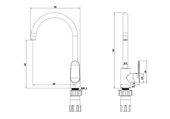 • оснащен высоким изливом, подходит для большинства кухонных моек