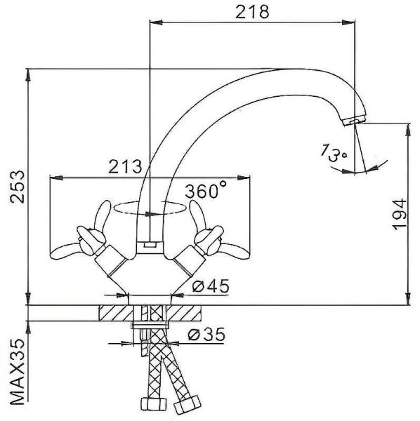 - Высота смесителя:25.3