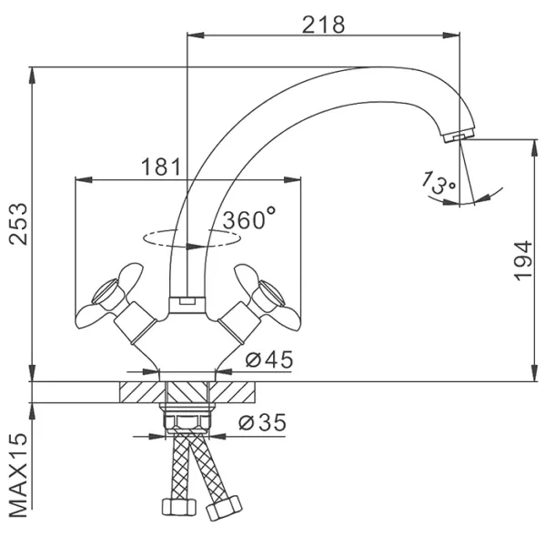 • Высота смесителя:
