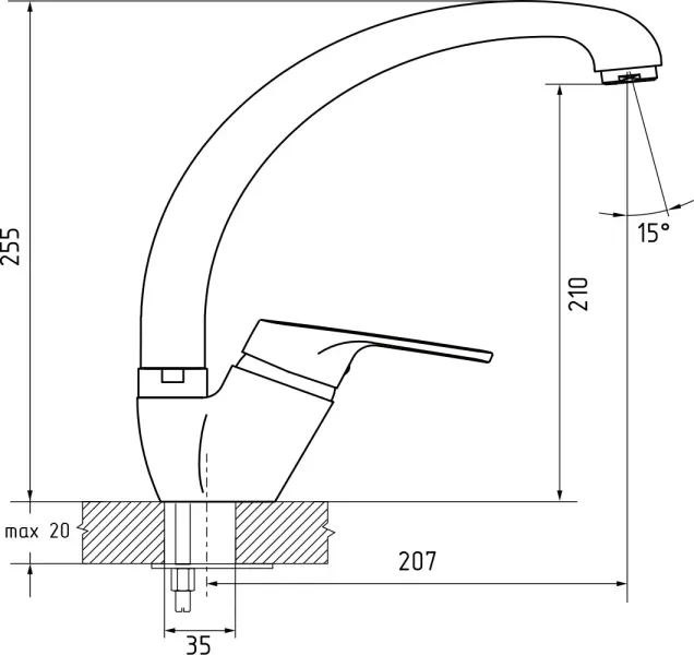 • Высота смесителя: