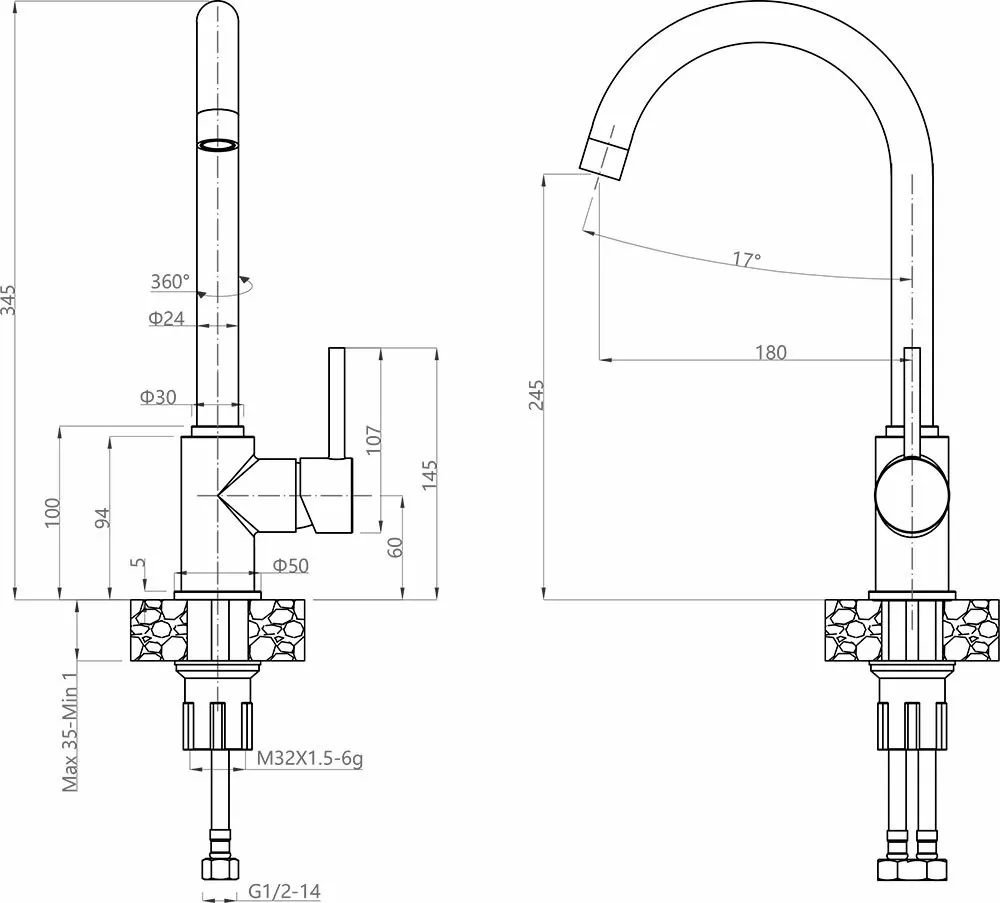 • Высота смесителя: