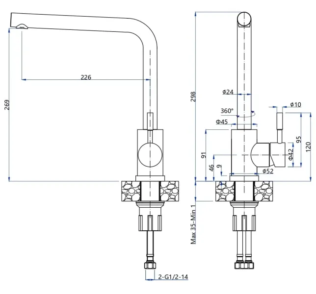 Смеситель для кухни GranFest URBAN Z-5411 серый
