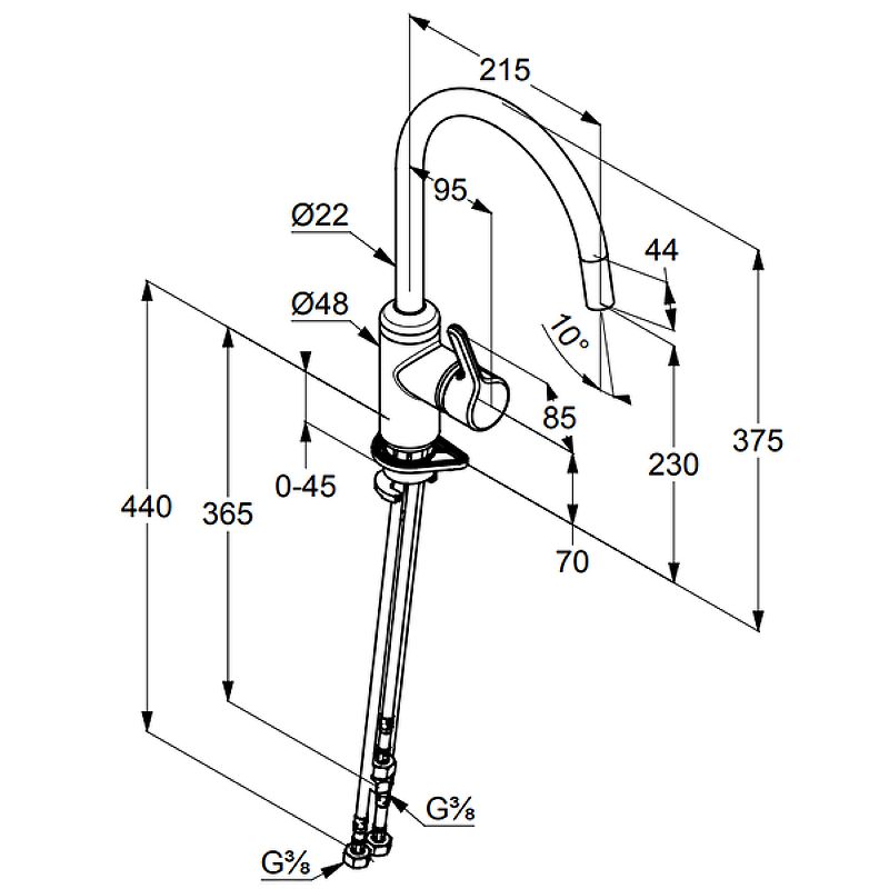 - гибкая подводка G 3/8