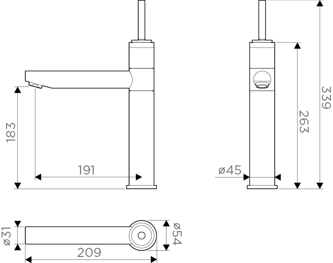 • Высота смесителя: