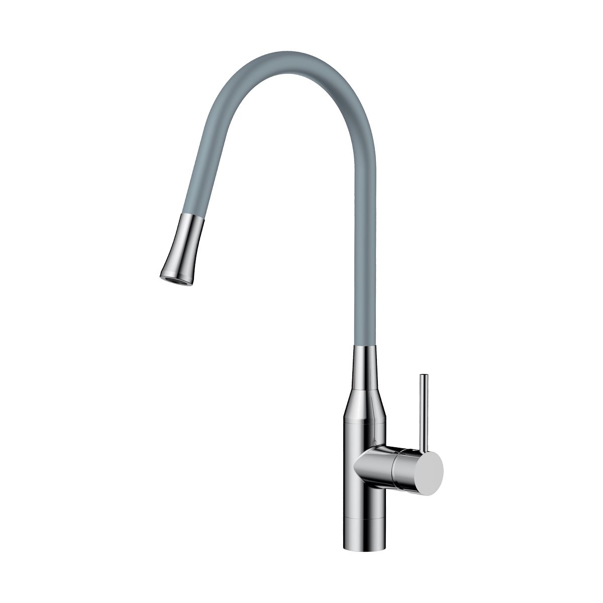 - Смеситель снабжен высоким поворотным шлангом, который при изменении формы всегда остается в устойчивом положении