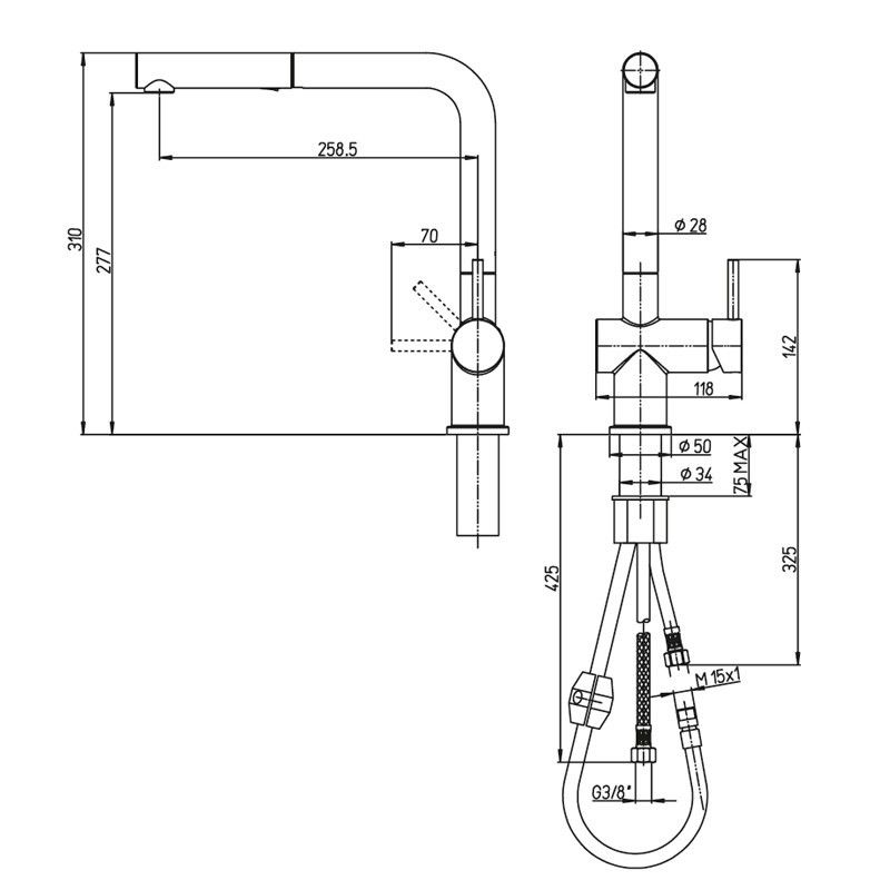 - Выдвижной излив:да