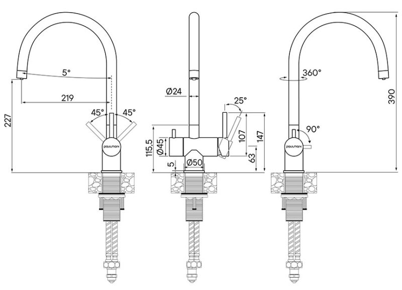 Смеситель для кухни, с возможностью подключения фильтра питьевой воды, артикул He213218-431Изготовлен из нержавеющей стали AISI 304. Нержавеющая сталь AISI 304 легирована никелем, марганцем, медью и хромом, что обеспечивает ей повышенную прочность и устойчивость в коррозионных средах, такая сталь подвержена деформациям.