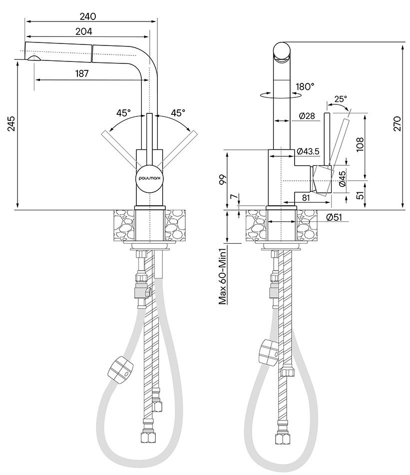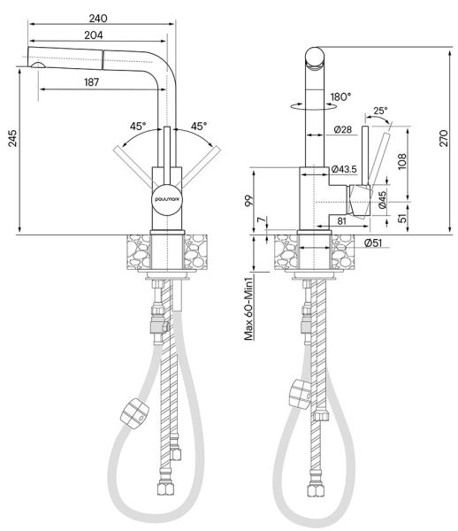 Смеситель для кухни с выдвижным шлангом, Ka214311-328Изготовлен из высококачественной латуни, которая отвечает высочайшим европейским стандартам качества, не содержит свинца, не разрушается со временем и безопасна для здоровья.Вытяжной шланг