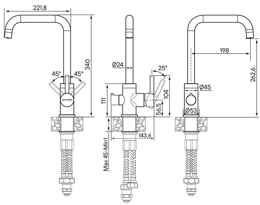 Конструктивная технология Trinkwasser® предусматривает поступление фильтрованной воды, которая не смешивается с водопроводной. Фильтрованная вода подается через отдельные трубку и аэратор.