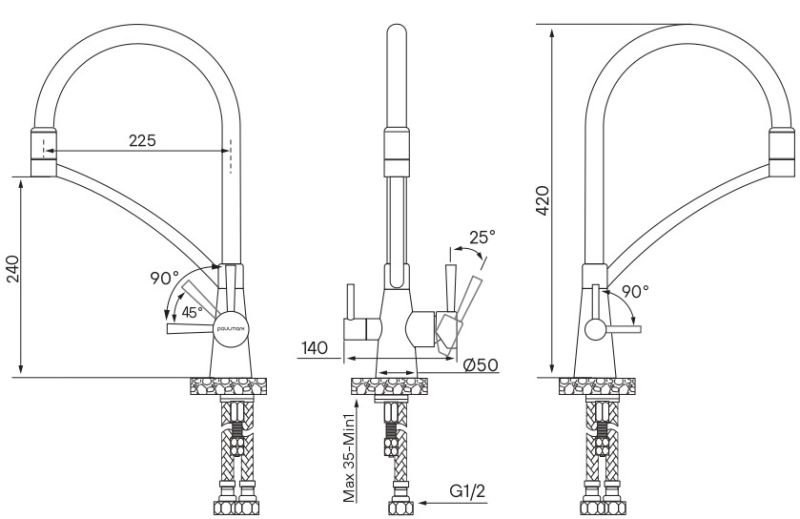 Смеситель для кухни Paulmark Siegen Si213111-401TB антрацит купить