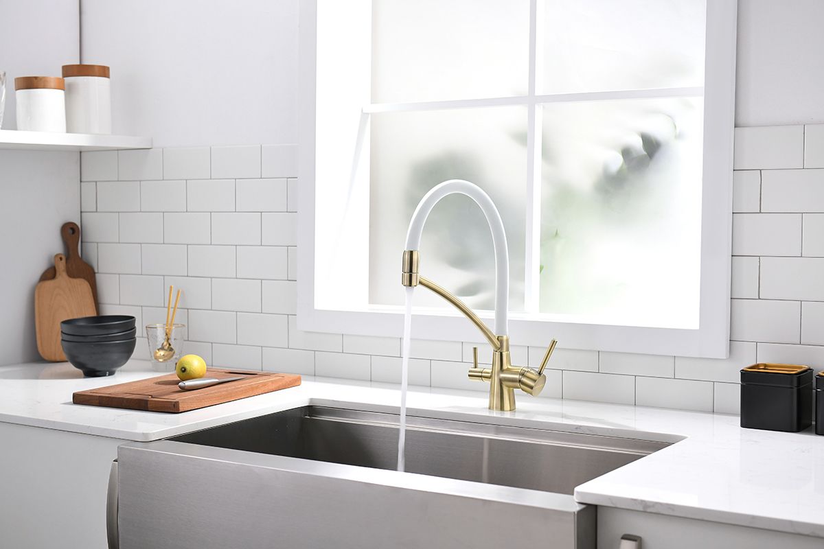 Смеситель под фильтр с гибким изливом, артикул Si213111-BRwСмеситель для кухни однорычажный, с возможностью подключения фильтра питьевой воды, эластичный излив, керамический картридж 35 мм.Материал корпуса - латунь высокого качества. Многослойное, стойкое к истиранию покрытие. Долговечный керамический картридж диаметром 35 мм. Эластичный излив. Съемный пластиковый аэратор, который обеспечивает мягкую струю, ровный и экономичный поток воды. Простой монтаж, стандартное подключение.