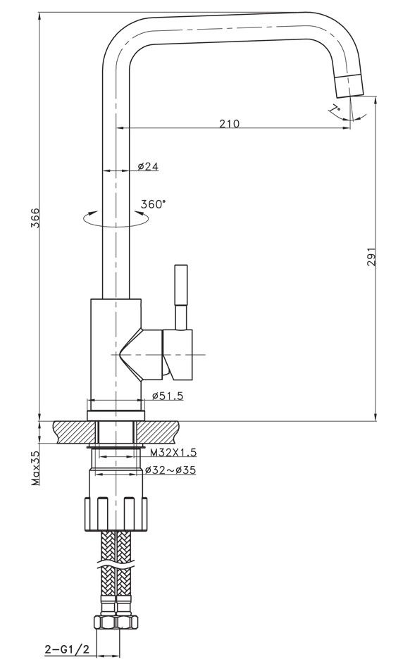 • Высота смесителя: