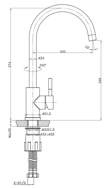 Смеситель для кухни Raiber Graceful RPB-012 чёрный матовый