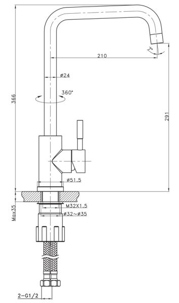 - Высота смесителя:36.6
