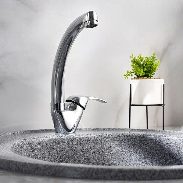 Классический однорычажный смеситель для кухни с высоким поворотным изливом обладает лаконичной ручкой регулировки температуры воды, отлично подойдет для оснащения любой раковины.